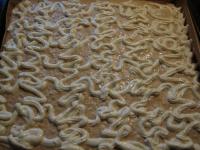 Egy nagyobb sütőlapot (48x38cm) sütőpapírral kibélelünk és beleöntjük a tésztát.