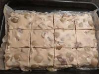 Az almás pudingot rákenjük a megsült tésztára és hagyjuk lehűlni.