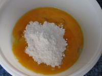 A kikevert sárgákat belekeverjük a fehérjéből készült habba.