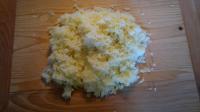 A burgonyát megszórjuk liszttel, búzadarával, hozzáadjuk a sót és a tojást.
