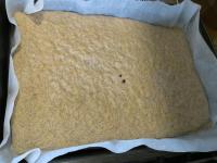 A tésztát egy sütőpapírral bélelt sütőlapra öntjük.