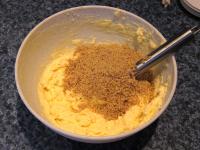 A sárgáját összekeverjük cukorral és vízzel. Belekeverjük a diót.