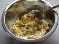 A szárított fűszereket egy mozsárban összetörjük. Összekeverjük a puha vajjal és a szezámmagokkal.