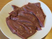 És szeleteljük fel a májat kb 0,5 - 1 cm.