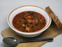 Sűrű halleves sok sok zöldséggel, kedvelt medvehagymával megtoldva