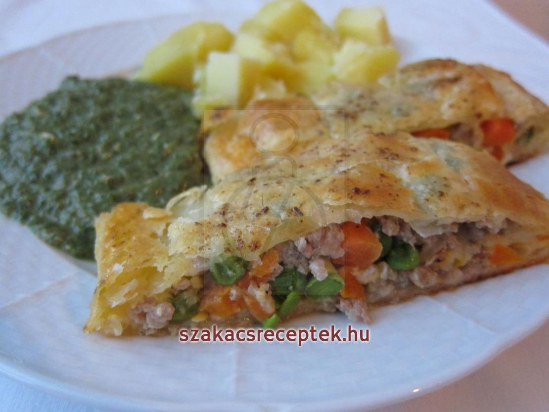 Húsos-zöldséges rétes leveles tésztából