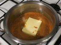 A forró keverékhez hozzáadjuk a vajat és addig keverjük amíg a vaj elolvad.