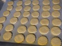 A tésztát kb 0,5 cm vastagra nyújtjuk majd 4 cm átmérőjű karikákat vágunk belőle.
