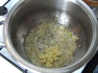 A hagymát megpucoljuk, apróra vágjuk és zsiradékon megpirítjuk. Hozzáadjuk a préselt fokhagymát.