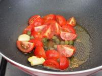 Együtt pirítjuk és időnként kevergetjük, amíg a paradicsom meg nem puhul és levet enged.