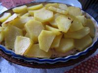 A sütőtál aljára egyenletesen rárakjuk a savanyú káposztát. Facsarjuk ki ha nagyon sok vizet tartalmaz. A csirkemelleket a káposzta tetejére rakjuk és betakarjuk a krumplikarikákkal. Megsózzuk.