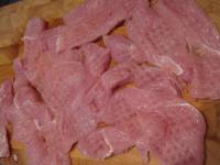 A lisztet összekeverjük a zsemlemorzsával és a sóval. A húst meghempergetjük a lisztben.