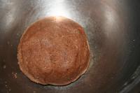 A piskótát összetörjük, hozzáadjuk a őrölt diót, vanília cukrot, porcukrot, olvasztott csokoládét, lekvárt, tojás fehérjét, rumot és vajat, majd jól összekeverjük, és tésztát dolgozunk ki belőle. Műanyag zacskóba tesszük, és hűtőben egy órát állni hagyjuk.