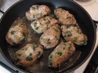 Forró olajon sütjük 8 percig lefedve, majd megfordítjuk és a másik oldalát is megsütjük kb 6- 8 percig.