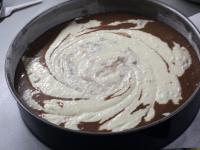 Egy kanál segítségével a tölteléket lágyan elkeverjük, hogy márvány effektust érjünk el a sütés után.