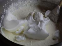 Óvatosan hozzákeverjük a fehérjéből és cukorból készült habot.