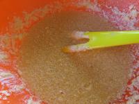 A megolvadt vajba belekeverjük a mézet, kristálycukrot és a vaníliacukrot és egy csipetnyi sót.